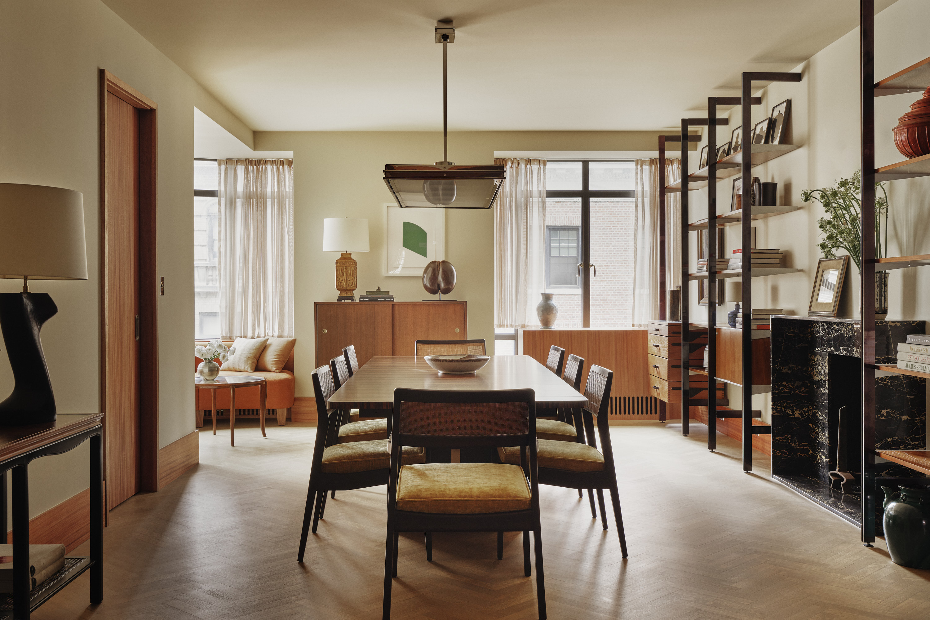 The client - a dedicated collector of modern art and furniture who relocated from a Stanford White-designed home in Murray Hill -approached the acquisition as one would a fine work of art. To reflect this, majority of the interior is furnished with vintage pieces, featuring iconic designs such as Jens Risom Playboy chairs, a George Nelson shelving system, and an original Ellsworth Kelly painting.